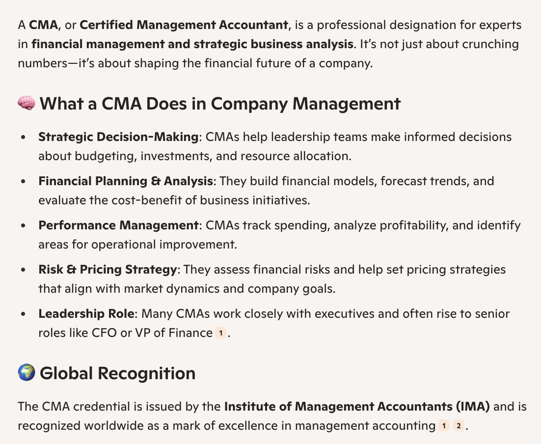 Copilot response about what a CMA is (Aug 29, 2025)